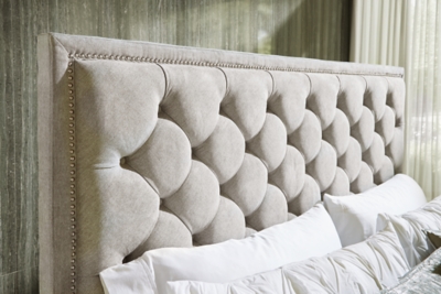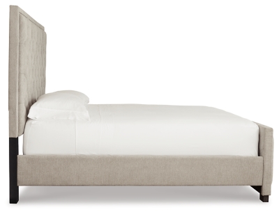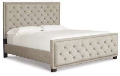 Few sets demand attention like the Bellvern upholstered bedroom. In addition to opulent button-tufting, its clean contemporary lines and simple symmetry have a minimalist appeal that fits perfectly in an upscale transitional setting. Includes headboard, footboard and rails Textured gray polyester upholstery Nailhead accents Foundation/box spring required, sold separately Mattress available, sold separately Assembly required Expert assembly recommended; available at check out for an additional fee Bed is compatible with an adjustable base Estimated Assembly Time: 70 Minutes