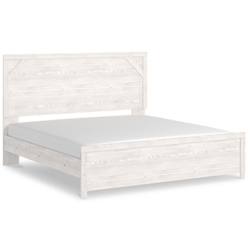 Cool, clean and casually modern. This king panel bed’s wispy whitewash finish sets the tone for your calming sanctuary. Framed elements and cross-brace accents add dimension and authenticity to the bed’s simply stunning profile.