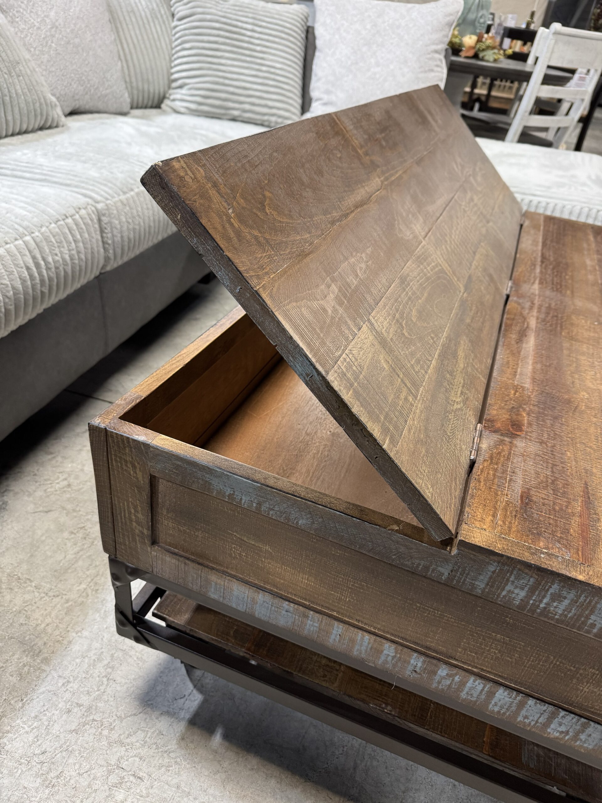 Lift-Top Storage – Hidden compartment for stashing blankets, remotes, or everyday essentials.