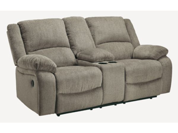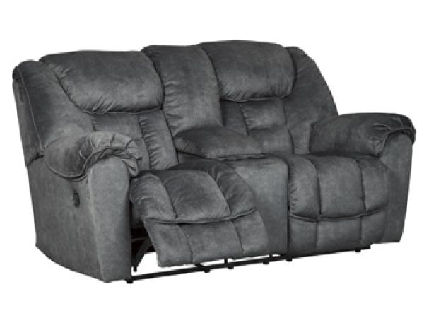 Double Reclining Loveseat. Casual contemporary styling. Two correlate pillows. Plush, pad-over chaise seating. Solid foam arm pads. 100% polyester cover – easy to maintain