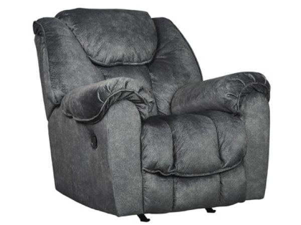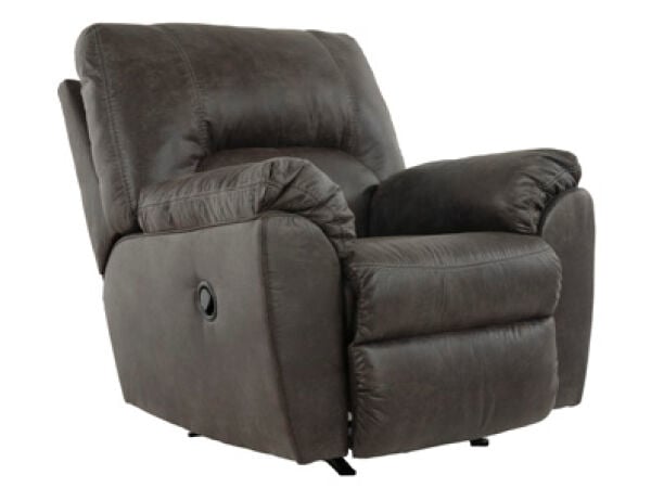 Lancer Rocking Recliner With its pillow top arms and tall, curved back featuring detailed channel-stitching, our Lancer Rocking Recliner delivers a large dose of casual style. Simply use the convenient handle on the outside arm to raise the legrest for reading, relaxing or watching TV. When you’re not reclining, it’s a relaxing rocker with a smooth, graceful motion. Make it yours with your choice of fabrics and other available upgrades. • Ultra-comfortable family favorite recliner • Rocks and reclines for total comfort • Adjust the legrest with a convenient side-mounted handle • 3-position locking legrest for added safety and support • Double-picked blown fiber fill for improved cushion loft and shape retention • High grade foam seat cushions that maintain their comfort and appearance Dimensions: • Body Depth: 40.0″ • Body Height: 41.5″ • Body Width: 37.0″
