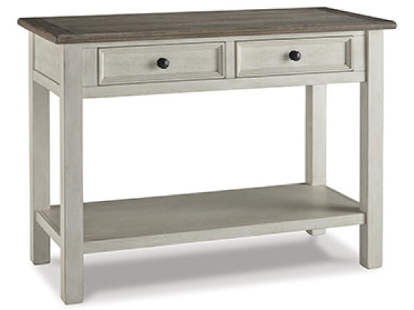 Made with select hardwood solids and white oak veneers in a weathered gray finish. Paint grade materials form the base and finished in an antique white color. Tables feature plank and frame top and casual styling throughout. Cocktail features 4 working drawers and lift top. Casters for mobility. T637-7 chair side table has pullout tray ,large door for storage and lift up top (back section) that exposes an AC power supply with 2 USB charging ports. Also included in the collection are a sofa table and end table with generous proportions. T637-107 has a plank-styled top. Smooth gliding drawer. Integrated 110V power supply with dual USB charging ports. Black faceted hardware. |