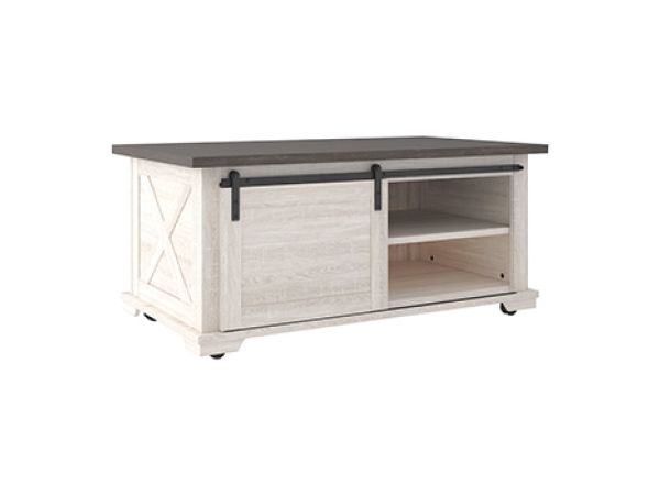 Casual lifestyle design. Constructed with select Ash veneers and engineered board. Finished in a textured grayish brown finish with complex hues of white undertones. Oversized cocktail table is a feature choice for use with large scale sectionals. |